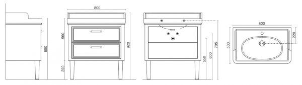 Тумба-умывальник Pompei 80, 2 ящика