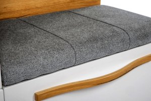 • Внизу тумба с мягким сиденьем сверху, под сиденьем 2 ниши за откидной дверью на кронштейне