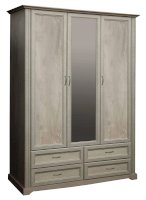 Данная модель – уменьшенная версия шкафа «Сохо» 32.01 - не менее удобная, просто более компактная, а в чем-то даже более универсальная. Два закрытых дверных полотна справа и слева и изящная зеркальная створка в центре создают мебельную терцию, наполненную воздухом и светом. Зеркало отражает пространство и таким образом визуально его расширяет. Слева расположен отсек для одежды на вешалках – он снабжен металлической штангой, которая выдерживает вес до 20 кг. Над штангой расположена удобная горизонтальная полка, которая служит в качестве антресоли, куда можно убрать сезонные вещи, либо предметы, которыми хозяева пользуются не так часто. Можно надеть любимое платье или костюм, закрыть дверцу шкафа и тут же оценить себя в зеркале. Очень удобно! Справа – отсек с полками, на которых  размещается одежда, а также коробки-боксы с вещами или обувью. Каждая полка выдерживает до 5 кг – это достаточно для большого количества вещей. Внизу находятся четыре выдвижных ящика: два плюс два. Верхние удобны для белья и трикотажа, нижние – для обуви. Однако, решать вам – никто не вправе ограничивать фантазию хозяев шкафа. Благодаря современным технологиям дверцам и выдвижным ящикам не нужны доводчики – они легко и дружелюбно распахиваются и выдвигаются навстречу  по первому желанию хозяев. Шариковые направляющие обеспечивают очень плавный ход. Дверцы и ящики снабжены металлическими ручками, которые учитывают анатомию ладони, поэтому ими очень удобно пользоваться.
