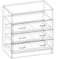 • Корпус, полки и фасады изготовлены из ЛДСП 16 мм с кромкой ПВХ 0,4 мм.