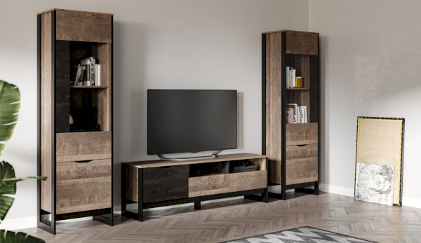 Оригинальная функциональная стенка Стокгольм впишется в любое современное пространство гостиной в квартире или загородном доме. Особенность дизайна – это сочетание реалистичных по цвету и тактильности трендовых декоров, которые соответствуют последним городским тенденциям. «Дуб Гранж» привлекает песочным оттенком и имитацией вручную обработанного дерева с выразительной зернистой текстурой, характерной формой досок. Стильный серый цвет «Железного камня» с металлическими разводами и новая текстура состаренной штукатурки в сочетании с гладкостью металла вносят индустриальный колорит. Оригинальные ножки-опоры из контрастного профиля МДФ, расположенные по бокам модулей, имитируют металл и подчеркивают стиль коллекции. Витрины из стекла создают ощущение свежести, легкости и чистоты.