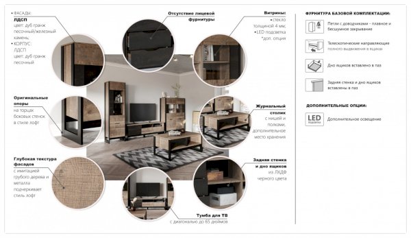 Модульная гостиная Стокгольм Дуб гранж песочный/Железный камень (Империал) - за 44 840 руб. в Шахтах. Купите на сайте shahty.onlinemarketmebeli.ru или по телефону 8(800)505-30-63 уже сегодня! Уточнить наличие, комплектацию, актуальную цену можно бесплатно у менеджера ежедневно. Закажите Модульная гостиная Стокгольм Дуб гранж песочный/Железный камень (Империал) до конца акции! Доступна покупка в кредит, рассрочку. Доставим со склада или на заказ.