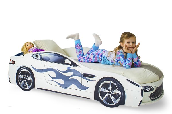 Кровать-машина “Бондмобиль”  для детей от 2 до 10-12 лет, идеально подойдёт и для мальчиков, и для девочек. Кровать выполнена из экологичного ЛДСП, имеет прочное основание из цельной плиты ЛДСП 16 мм. Кроме того, предусмотрен подъёмный механизм с пружиной, дно поднимается и опускается очень плавно. В комплекте предусмотрен ортопедический матрас, а в основании размещен вместительный ящик, который удобно использовать для хранения белья или игрушек.