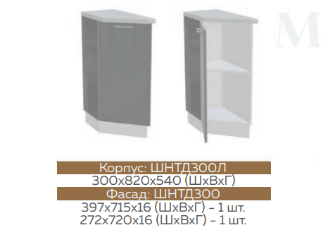 Глубина верхних шкафов: 300 мм