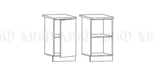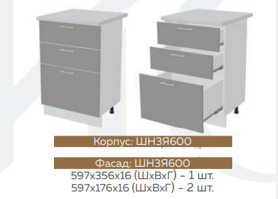 Глубина нижних шкафов без учета столешницы: 444 мм, с учетом столешницы 600 мм