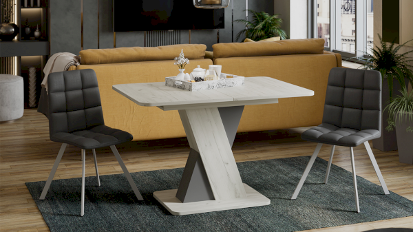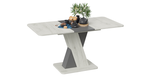 В оформлении новинки применяются актуальные варианты декора, что подчёркивает универсальность стола. Модные текстуры «Дуб крафт золотой», «Дуб крафт белый» придадут ощущение тепла и уюта в кухонном интерьере.