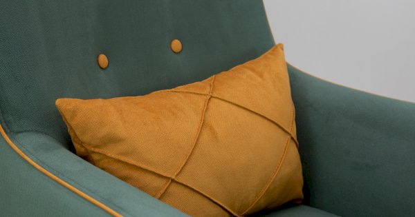 Декоративный кант на кресле, защипы на декоративной подушке, пуговицы на спинке