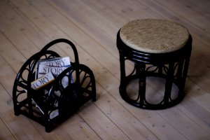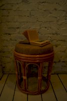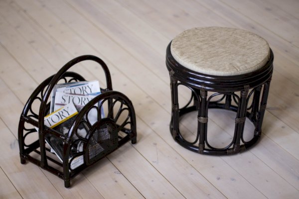 Табурет из ротанга с мягким сиденьем.