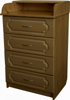 По вашему желанию верхняя крышка комода откидывается и предоставляет большую поверхность для пеленания младенца и массажа. Используемые в производстве комода материалы отличаются высоким качеством.
