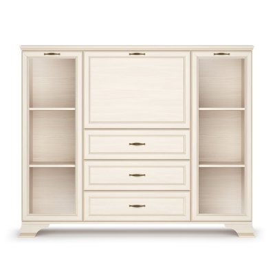 Если вам нужно купить недорогой низкий шкаф в гостиную в классическом стиле обратите внимание на данную модель. В его наполнении вам доступно 2 отделения со стеклянными дверками для хранения посуды, книг и различных сувениров. На ваш выбор вы можете докупить четыре стеклополки и модель заиграет новыми красками.