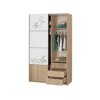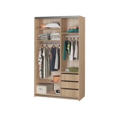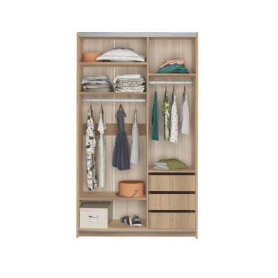 Наполнение: шариковые направляющие (3 выдвижных ящика), ролики 2-х дв. для шкафа KRM2, штанга для одежды, полки.