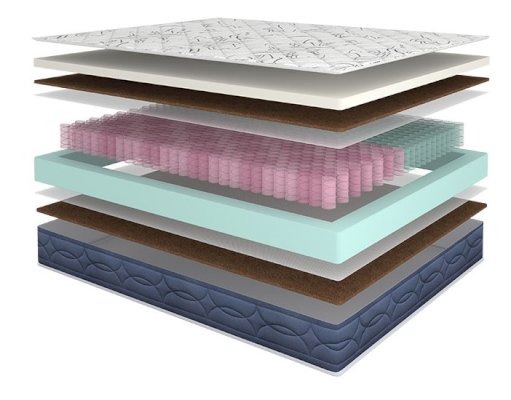 Наполнитель: Высокоэластичная пена ElasticFoam, кокосовая койра, НПБ “соты” 310 шт/кв.м., НПБ 256 шт/кв.м.,система усиления боковой поддержки, ППУ