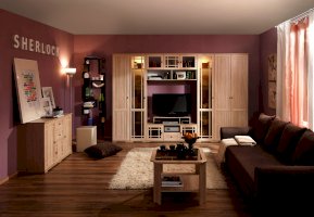Необычная гостиная «Sherlock» (Шерлок), выполненная в брутальном английском стиле, создаст строгое и правильное настроение времен конца 19 века. Изюминка данной коллекции - это необычные для мебели рамочные фасады, дополненные тонкими накладками, что придает гостиной дополнительный шарм. Классика актуальна во все времена и не подвержена веяниям изменчивой моды. Поэтому, классическая коллекция корпусной мебели для гостиной SHERLOCK всегда будет выглядеть стильно в Вашей гостиной.