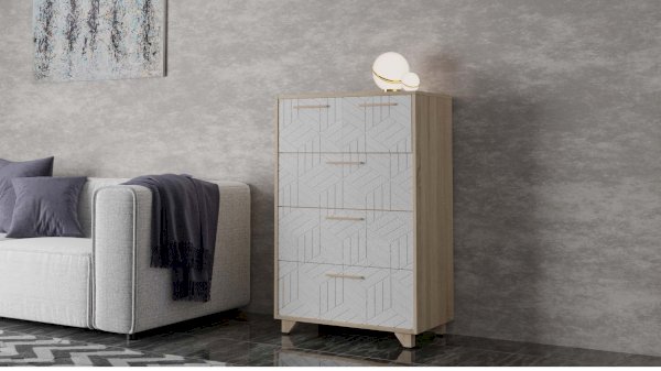 Комод Амстердам — вместительный и функциональный элемент как для спальни, так и гостиной. Модель оснащена тремя большими ящиками для хранения предметов одежды, текстиля и двумя маленькими — для личных вещей, документов, аксессуаров. Конструкцией предусмотрены шариковые направляющие полного выдвижения.