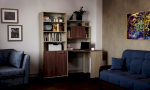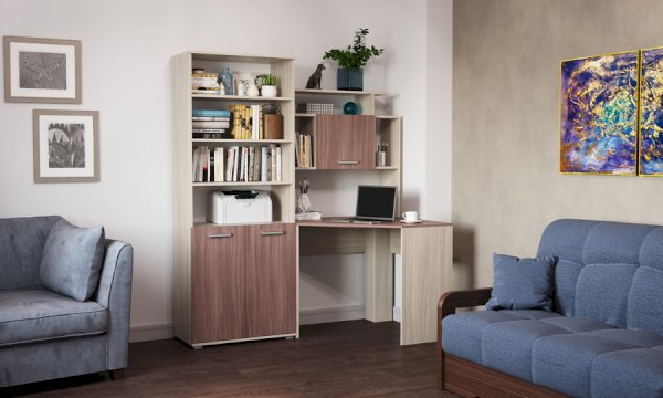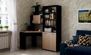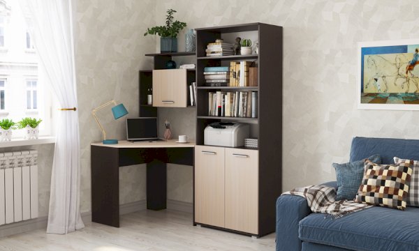 Стеллаж и пенал можно устанавливать как с левой, так и с правой стороны от углового стола, а также использовать как отдельный элемент.