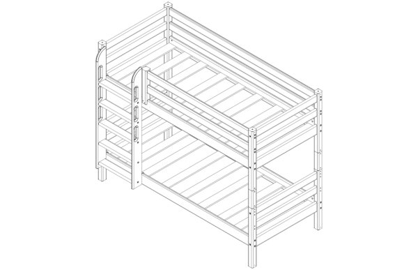 В состав варианта входит: Пакет № 1 базовый, кол-во 1 шт. Пакет № 2 латы, кол-во 1 шт. Пакет № 3 задняя защита от падения, кол-во 3 шт. Пакет № 4 передняя защита 1/4, кол-во 1 шт. Пакет № 12 опоры для низкой кровати, кол-во 1 шт. Пакет № 13 прямая лестница для низкой кровати, кол-во 1 шт.