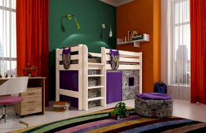 Кровать низкая Соня Вариант 11 с прямой лестницей (МБГ)