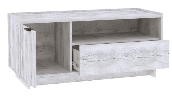 Светлая тумба ТВ Флекс 3 в современном минималистичном дизайне гармонично дополнит любую гостиную. Изюминка тумбы - бортики по трем сторонам. Выдвижной ящик на шариковых направляющих плавно и бесшумно открываются за фасад. Притопленный цоколь создает ощущение легкости и воздушности. На невысокой тумбе можно разместить телевизор диагональю до 49''.