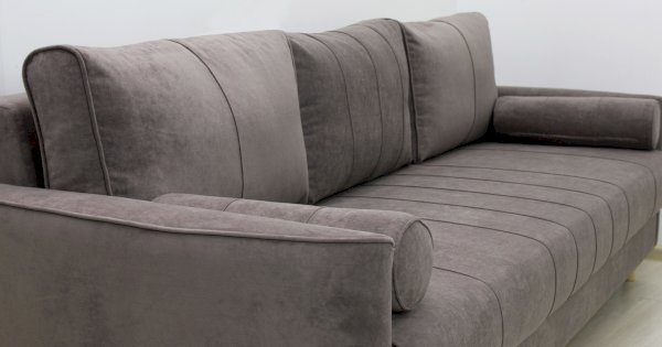 Кант на торцах приспинyых подушек, сиденья и подлокотников. Защипы на сиденье и приспинных подушках. Две декоративные подушки-валика с защипами.