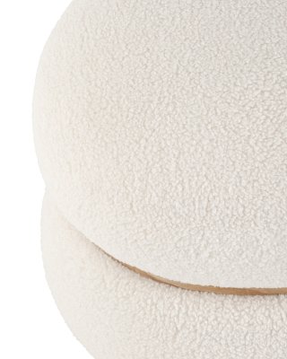 Лаконичный круглый пуф в скандинавском стиле. Мягкая обивка выполнена из искусственного меха тедди - очень мягкий и приятный на ощупь материал. Прочный каркас из фанеры выдерживает на грузку до 150 кг. Вставка по середине из светлого массива дерева гармонично сочетается с белой обивкой.