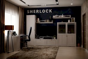 Широкий выбор модулей коллекции SHERLOCK помогает создать уютную гостиную с комфортным рабочим местом, что очень важно для маленькой квартиры. Вместительный 15 Стол письменный можно расположить между шкафами и навесить над ним 4 Шкаф навесной на любой удобной для Вас высоте. 5 Тумба МЦН – отличный вариант не только для хранения вещей, но и для размещения на ней телевизора. Шариковые направляющие тумбы обеспечивают плавность хода выдвижных ящиков. Большой выбор шкафов коллекции SHERLOCK дополнит и то, что 10 Шкаф угловой можно выбрать либо с фасадом Стандарт, либо с фасадом Зеркало. Все фасады модулей коллекции декорированы классическим переплетом из МДФ.