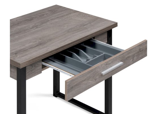 Ящик стола оснащен лотком для хранения столовых приборов.