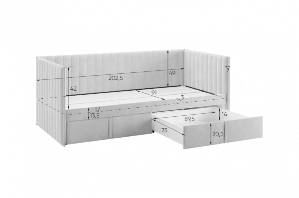 Основой кровати служит настил из ЛДСП, который гарантирует надежность и долговечность конструкции. Размер 90х200 см делает кровать Твикс (Софа) идеальной для одного человека, создавая комфортное пространство для отдыха.