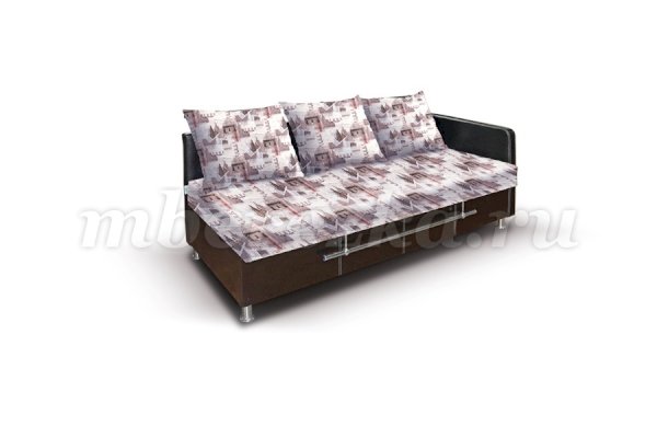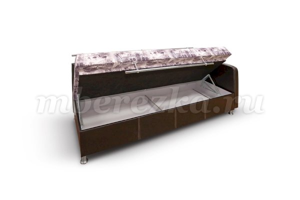 Стильный раскладной диван-кушетка, отличающийся современным дизайном и практичностью. Это удобная, компактная и модная мягкая мебель. Представленная модель имеет спальное место (пружинный блок в основании) для одного человека. Под сидением  размещается вместительный ящик для белья, в котором можно хранить и постельные принадлежности, и другие вещи.