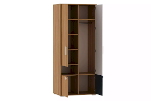 Шкаф оснащен четырьмя распашными дверьми и множеством полок, которые обеспечивают достаточно места для хранения вещей. Внутри шкафа предусмотрена овальная штанга для одежды на вешалках. Комбинируйте шкаф для одежды и одноименные модульные шкаф-пеналы или стеллаж, чтобы создать системы хранения на любой вкус и размер!