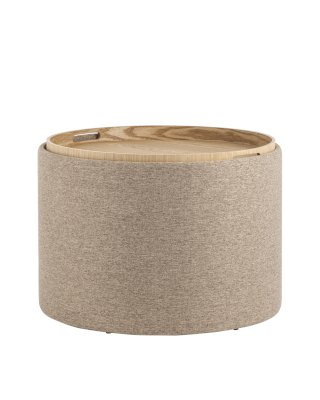 Мягкий пуф с ящиком станет незаменимым украшением интерьера. Он не только удобный, но и функциональный. Благодаря двухсторонней крышке, пуф можно трансформировать в журнальный столик. Столешница выполнена из светлого дерева с бортиками по краям и вырезными ручками для удобства, и безопасности при использовании. Крышка пуфика полностью съемная и при необходимости её можно использовать как поднос. Полезное дополнение - ящик для хранения различных мелочей, внутри обит тканью. Компактный и вместительный, такой пуфик наполнит пространство особым уютом и теплом. Подойдет для любого интерьера - как в классическом стиле, так и в современном.