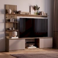 Гостиная "Рио" - это современная интерпретация классической гостиной. Данная модель достаточно компактна, но при этом является функциональной и вместительной. Гостиная "Рио" представляет собой единую конструкцию и вмещает в себя всё необходимое для компактного хранения - вместительная ниша под ТВ, открытые полки для домашней акустики и нужных вещей.