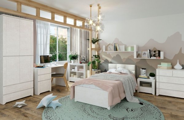 Узкий комод Твист для молодежной спальни. Несмотря на компактные размеры вмещает в себя белье и постельные принадлежности.