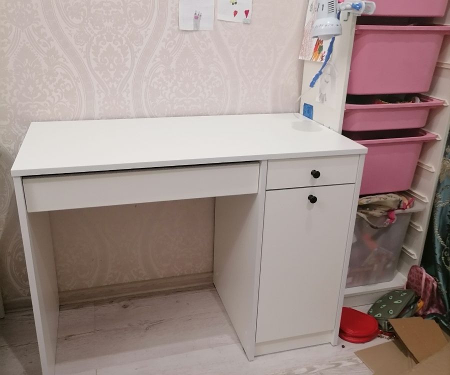 пришел стол хорошо упакованный, и что самое главное, без единого скола. Ребёнку очень понравился. Удобно что есть 2 выдвижные полочки и дверца с двумя полками. Сверху сразу постелила жидкое стекло, все таки ребенок сидит, а стол белый. Спасибо, покупкой довольна.