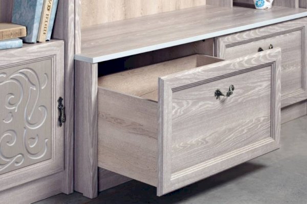 Фурнитура: ручки под состаренное серебро (пр-ва Италии), петли и направляющие – шариковые частичного выдвижения без доводчиков («Hettich» пр-ва Германии)