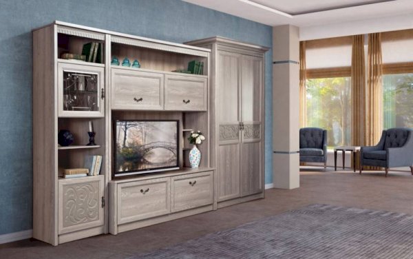 • Размер:(ШхВхГ, мм): 1602х2162х540 (ниша под ТВ 1080х705)