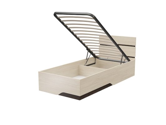 Кровать имеет встроенное основание с подъёмным механизмом, которое даёт доступ к просторным отделениям для постельных принадлежностей.