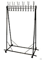 Групповая вешалка на 22 крючка. Вешалка выполнена из оцинкованной стали с полимерным покрытием. Крючки вешалки выполнены из трубы диаметром 10 мм. Вешалка поставляется в разобранном виде, в картонной таре. Эта модель вешалки может использоваться как фрагмент для обустройства гардеробных комнат.