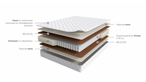 Наполнитель: ППУ, независимый пружинный блок, би-кокос