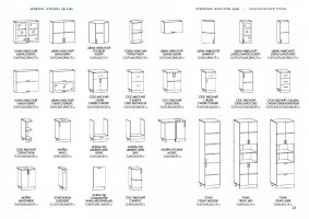Глубина верхних шкафов указана без учета фасада, высота столов указана без учета столешницы