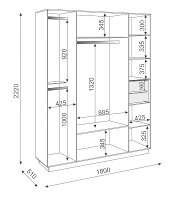 • В левой секции две штанги под короткие вещи и одна жесткая полка.