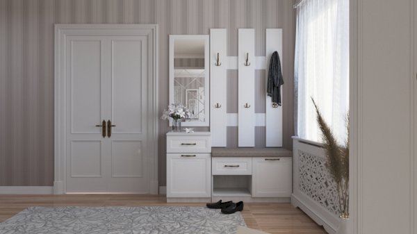 Цветовое решение: Холст белый матовый (МДФ) + Белое дерево (погонаж) + Рамух (ЛДСП).