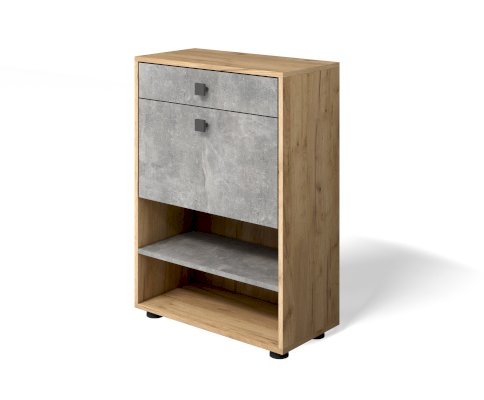 Узкая высокая обувница из набора модулей прихожей Мини-лайт включает ящик для средств ухода за обувью, обувницу с откидной крышкой и две полки под обувь. Не смотря на компактные размеры вместительна и функциональна.