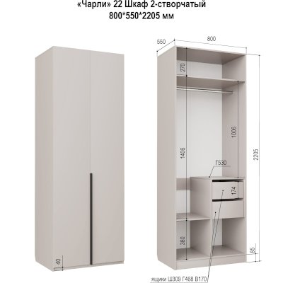 Размер (ШхГхВ): 800 x 550 x 2205 мм