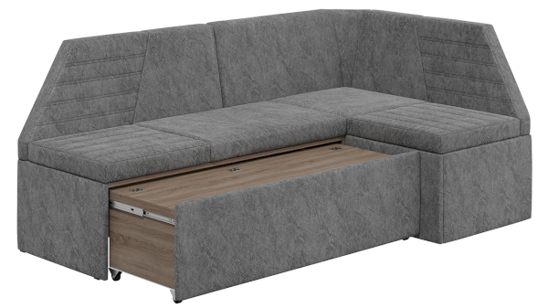 Новинка является многофункциональным предметом мебели, ведь в обычном виде скамья угловая поможет удобно разместиться за обеденным столом, а механизм трансформации превращает его в полноценное спальное место. Для раскладывания необходимо выложить подушки, которые входят в комплект, на выдвигаемую часть скамьи. Модель позволит Вам отказаться от большого количества подвесных полок и дополнительных модулей за счет того, что в ней имеется вместительное место для хранения под сидениями.