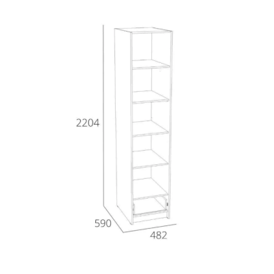 Шкаф оснащен пятью полками для хранения вещей, а также выдвижным ящиком с шариковыми направляющими, за счет которых ящик выдвигается плавно и бесшумно. Шкаф является модульным, что позволяет комбинировать его с другими шкафами из одноименной коллекции. Лаконичный дизайн шкафа гармонично подчеркивается черными ручками. Сборка шкафа универсальна – дверь может крепиться как на правую, так и на левую стороны.