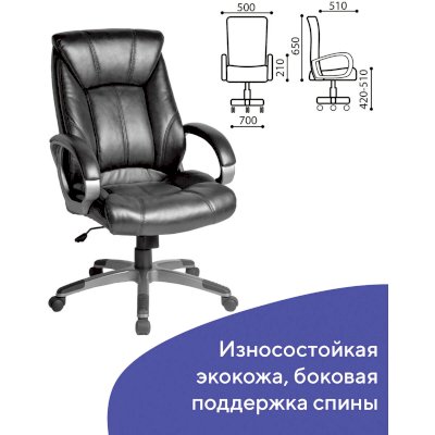 Плотная набивка, поддерживающая спину со всех сторон, прочные пластиковые подлокотники с мягкими накладками и высокая спинка дают чувство комфорта в течение продолжительного времени.