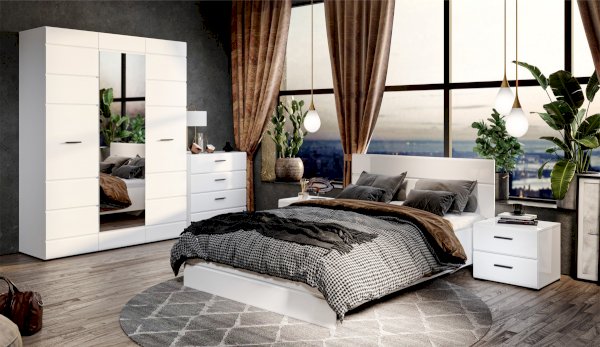 Кровать Йорк – это универсальная модель, которая подойдет для любого современного интерьера. Глянцевые изголовье и изножье белого цвета из МДФ украшены горизонтальной фрезеровкой. Кровать выполнена из экологически безопасных и надежных материалов.