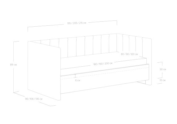 Длина спального места, см 180 / 190 / 200 / 200 / 190 / 180