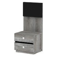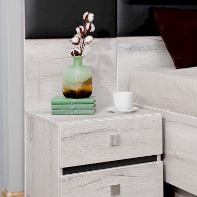 Прикроватная тумба NEO 41 с двумя выдвижными ящиками и высокой мягкой спинкой – красивый и функциональный модуль. Изюминка тумбы - комбинированная задняя стенка, возвышающаяся над столешницей: ее нижняя часть из ЛДСП, а верхняя с подушечкой из экокожи цвета Асфальт. Когда тумба приставлена к кровати, тогда она составляет единую композицию с изголовьем. Дополняют тумбу интересные ручки на ящиках: в обычном состоянии - это плоские прямоугольные кнопки, а при необходимости выдвинуть ящик средняя часть приподнимается кончиками пальцев.