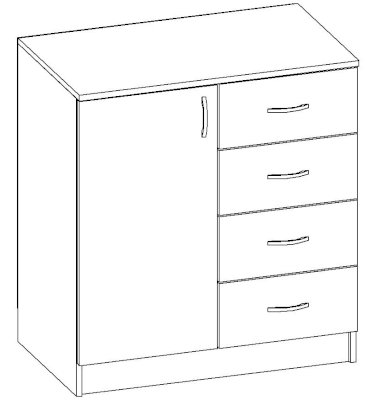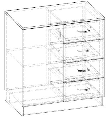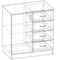 • Корпус, полки и фасады изготовлены из ЛДСП 16 мм с кромкой ПВХ 0,4 мм.
